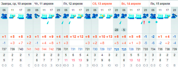 погода на 10 апреля