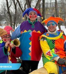 В Сысерти масленица началась с масштабного народного шествия, котором участвовало более сотни жителей. Целая разноцветная колонна с песнями, стихами-прибаутками, с музыкой прошла по улице Ленина от храма до площади перед администрацией округа и задала тон празднику.
