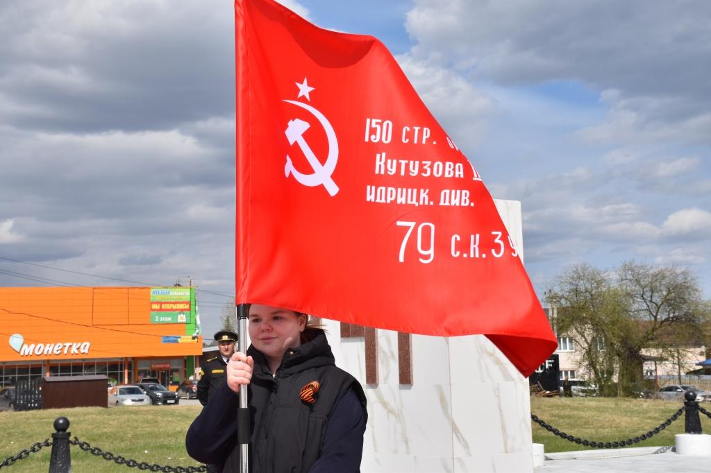 Чтобы дети помнили историю, копию Знамени Победы привезли в сысертскую школу №1.