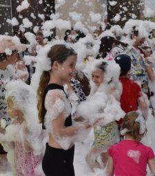 Про «торжественно», «красочно и звонко», «радостно» рассказала. Рассказываю про «весело». А что может быть веселее, чем пенная вечеринка? Она и началась прямо у стен Кашинского ДК. Настоящее пенное безумие в смысле «всем было безумно весело»!