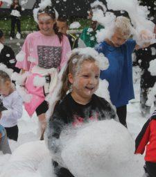 Было решено перенести часть мероприятий под крышу дома культуры и, как оказалось, не зря. Конечно, аттракционный городок для детей туда не разместить, но покататься, попрыгать, покрутиться они всё-таки успевали в ливневых перерывах, благо день был тёплый.
