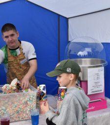 В самом начале программы «Земляки» свою толику славы, добрые слова благодарности, пожелания здоровья и успехов плюсом к Благодарственным письмам получили местные предприниматели В. В. Деменьшин, А. В. Лялина, И. А. Коряков, А. С. Передерий, Н. В. Валишина, Л. К. Трегуб, С. А. Бачинин (и это только те, фамилии которых я успела записать) которые помогают выживать родному селу, людям, здесь живущим. Благодаря предпринимателям такие праздники бывают чуть радостней для старожилов, юбиляров: сельская глава Южной администрации Л. А. Плотникова на таких праздниках как коробейница выходит на сцену с кучей пакетов с подарками. И дарит, дарит, дарит!… Юбилярам, семейным парам, старожилам, матерям военнослужащих – срочников и контрактников, выпускникам и даже первоклассникам. И все рады! Как, например, 90-летняя Муза Анатольевна Савина (на снимке). Или будущий первоклассник Валерий, который получил подарок, а его мама Н. В. Валишина – Благодарственное письмо (на снимке). Большинство предпринимателей не могли прибыть на праздник – были на рабочих местах. За Л. К. Трегуб, например, Благодарственное письмо получил ее сын Михаил, который, впрочем, и сам в этот день работал – как раз на Дне села торговал всякими вкусностями (на снимке).