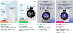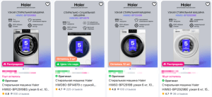 - Откройте каталог стиральных машин Haier и отметьте три модели, подходящие по размерам и объему.