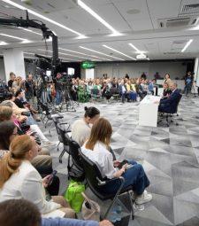 В медиафоруме приняли участие около 300 журналистов региона. Всем было интересно послушать врио губернатора. Модераторами пресс-конференции стали директор областного департамента информационной политики Инна Владимировна Аверкова, переехавшая в Екатеринбург из Оренбурга, и ведущая новостей «Первого канала» Мария Андреевна Васильева.