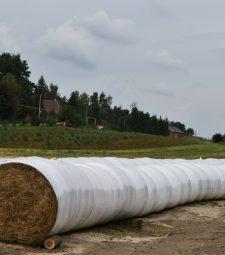 Сейчас идет активная заготовка кормов, работают во все погожие дни. Сено упаковывают вот в такую, как на снимке, герметичную агрострейч плёнку. Здесь по-простому называют её «колбасой», по схожести формы.