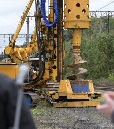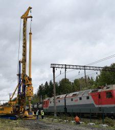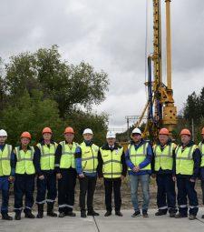 На стройплощадке будущего искусственного сооружения начала работу буровая установка. Она устанавливает буронабивные сваи, которые станут надёжным фундаментом для опор путепровода.