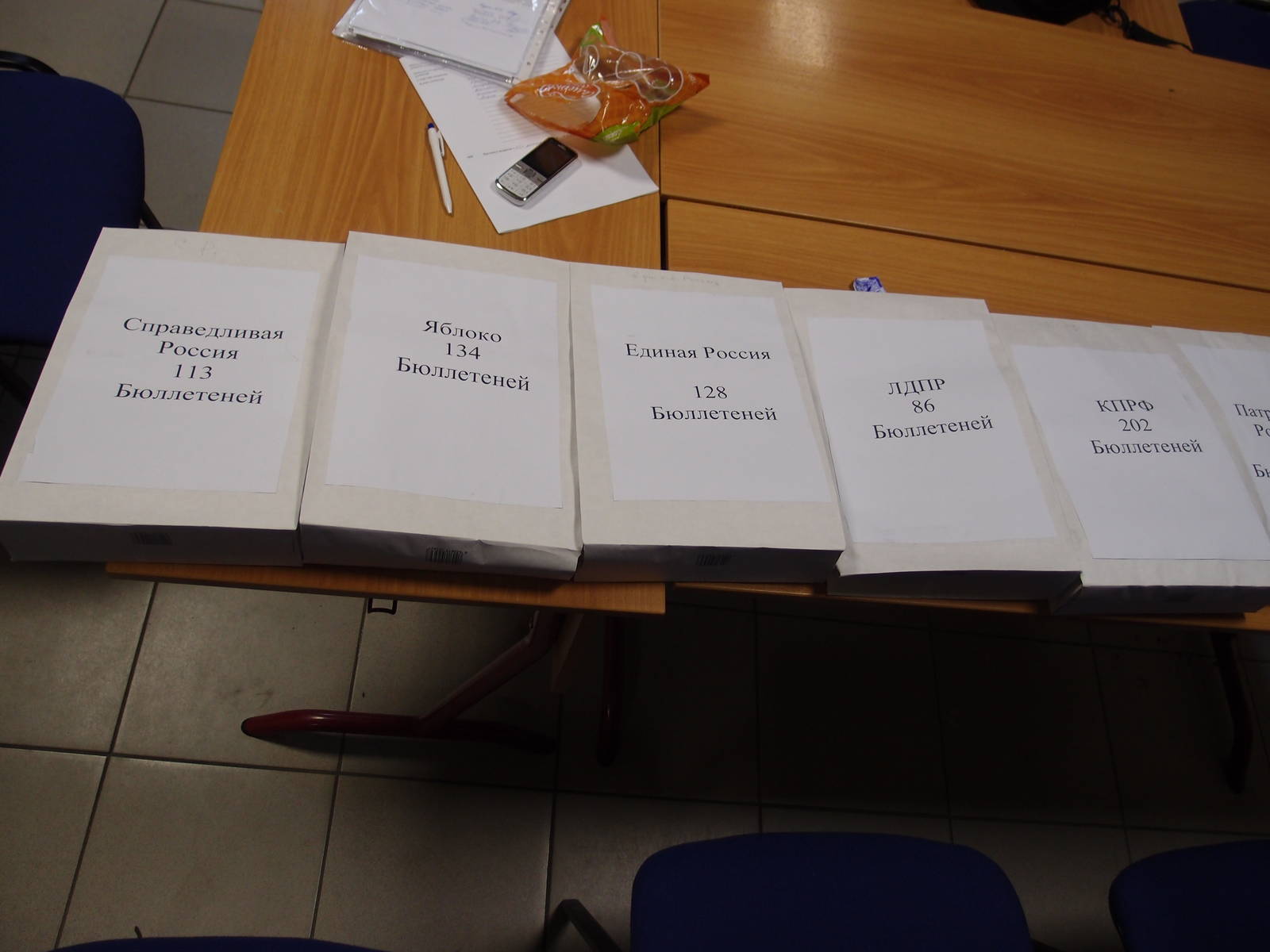 На участке проголосовало 697 человек. Посчитали: 202 за коммунистов, 134 за «Яблоко», 128 за «Единую Россию». Председатель ведет себя спокойно, все делает по закону. И обещает выдать копию протокола. Но выходит с двумя протоколами с участка и больше наблюдатель его не видел. И другие наблюдатели с остальных семи участков Арбата не получили копии протоколов, а председатели сбегали иногда даже через черный ход. Затем по сводному протоколу наблюдатель видит, что по его участку №6 у «Яблока» 4 голоса вместо 134, а у Единой России – 515 вместо 128.