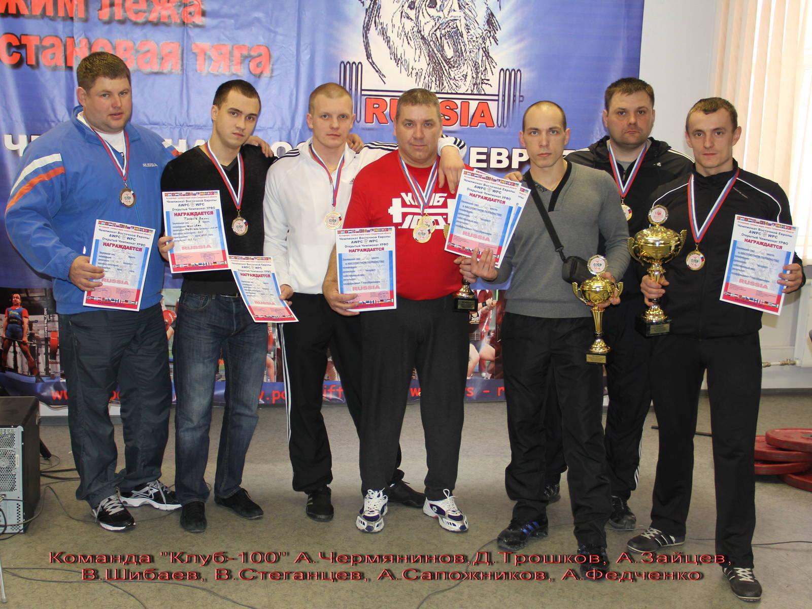 И вновь, как и на осеннем Кубке мира, всех удивила сборная команда из Сысерти, представляющая спортивный клуб «Клуб-100». К участию в турнире готовились семь спортсменов в разных весовых и возрастных категориях, под руководством тренера В. Шибаева. Все спортсмены уже имели опыт выступления на турнирах высокого уровня. А. Сапожников, В. Стеганцев, В. Шибаев, Д. Трошков, А. Федченко и А. Чермянинов с большим успехом выступили осенью 2011 года на Кубке мира. Дебютантом столь представительных соревнований стал А. Зайцев. Все наши спортсмены выступали в безэкипировочном дивизионе AWPC, где обязательно прохождение допинг-контроля при выполнении нормативов мастера спорта и мастера спорта международного класса.