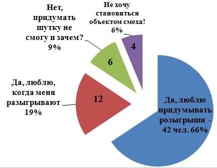 В итоге, мы узнали мнение 64 респондентов. Больше всего ребята любят, конечно же, сами придумывать шутки, но некоторые не прочь оказаться