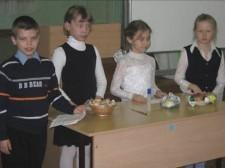 О нелегком труде хлеборобов, о вкусной продукции, которую получают из пшеницы, рассказали ученики 1б класса. Вместе с О. В. Барейшей ребята познакомили присутствующих с правилами «хлебного» этикета и «золотым» правилом сочетания хлеба с другими продуктами.