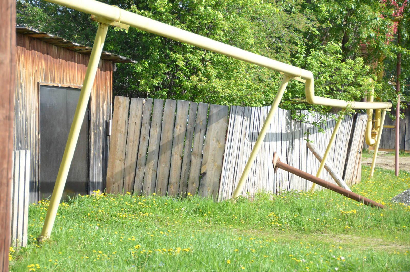 Газовые опоры по переулку Полевской в Сысерти, на отрезке между Р. Люксембург и К. Маркса, стали походить на пизанскуюбашню. Они также наклонились к земле.