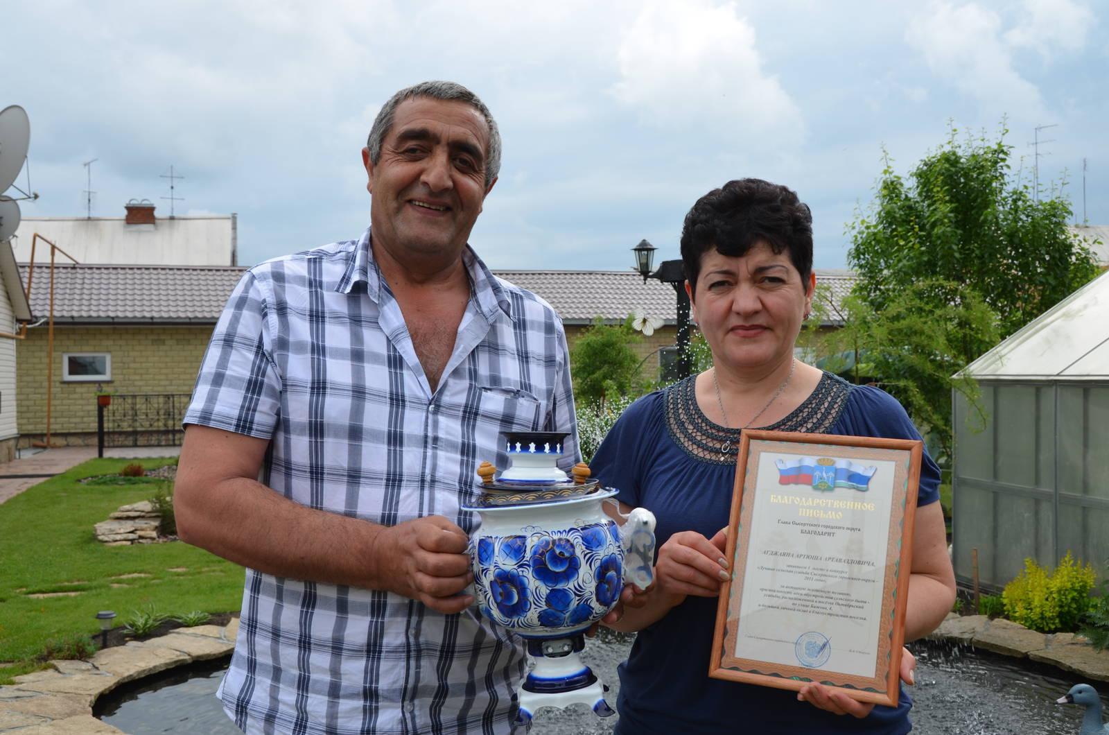 Не зря летом 2011 года усадьба Агджоянов признана лучшей в районном конкурсе. Правда, первое место им тогда присудили, а «заслуженную награду» не вручили, что и было сделано на днях. Исправить ошибку к Артюшу Артаваздовичу и Гоаре Меружановне приехали заместитель главы округа по социальным вопросам Анатолий Николаевич Галашев, начальник Управления сельского хозяйства Валерий Петрович Сорокин и глава Октябрьской сельской администрации Александр Петрович Кривегин, вручившие победителям благодарственное письмо главы округа, самовар и барашка. Живого – черного и кудрявого.