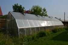 Длиной 12 метров (общая площадь – 60 кв. м.), она разделена перегородками из поликарбоната на три секции. Четвертая – небольшой тамбур у входа (также из поликарбоната), на полочках которого можно хранить и горшочки из-под рассады, и удобрения, и разные необходимые для работы на усадьбе инструменты… На крыше теплицы, как и положено, – несколько форточек. Именно к этому – делать форточки на крышах теплиц – нас призывает всегда кандидат сельскохозяйственных наук Борис Иванович Краснокутский. Горячий воздух, как известно, всегда поднимается наверх, и форточки – лучший способ проветривания теплиц.