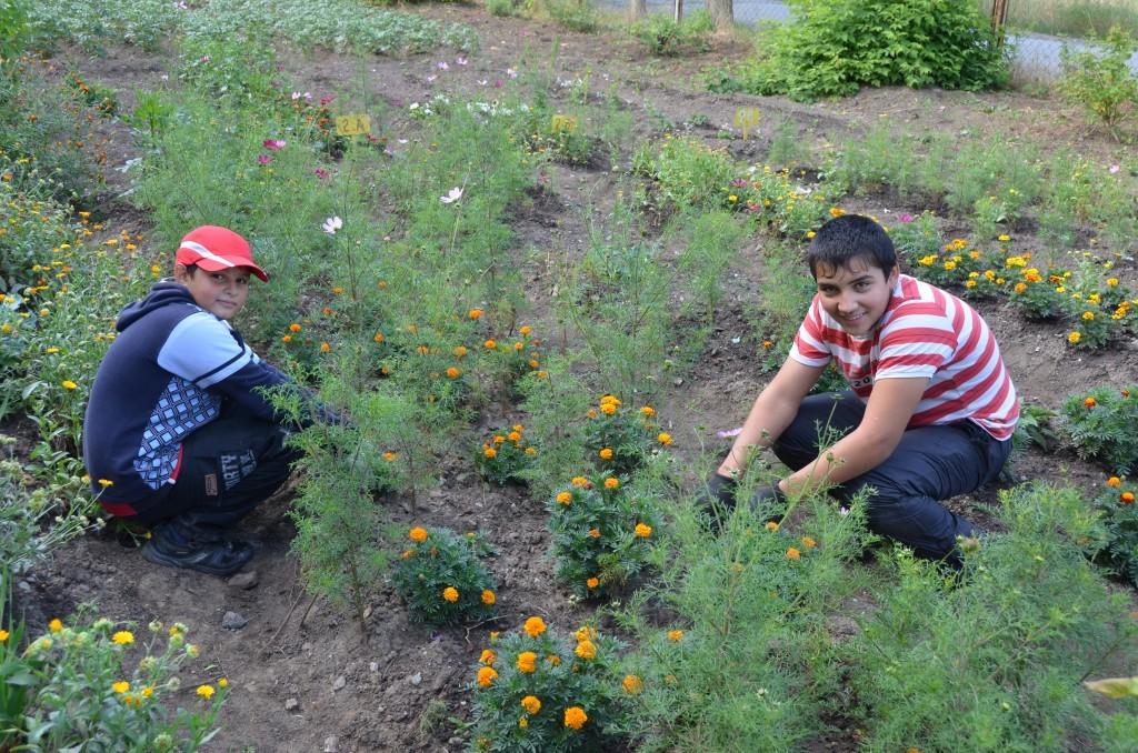 На снимке: семиклассники Александр Манвелян и Бахтовар Юлчиев сегодня работают в школьном саду.