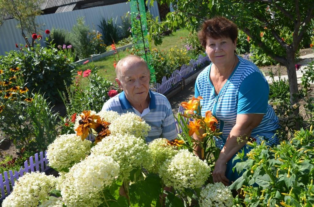 Дом Александра Максимовича и Ольги Николаевны Бочкаревых на улице Трудовой сразу привлекает внимание. Он стоит в глубине двора, а перед ним – настоящий сад. Цветов – множество. Тут и петуньи, и астры, и циннии. И даже гортензия с нежнорозовыми цветами (до сих пор видела у наших садоводов только белоцветущие гортензии). Ее Ольга Николаевна купила в магазине «Оби» в Екатеринбурге. Никакого особого ухода не осуществляет, на зиму не укрывает, подкармливает только коровяком. Все это цветочное царство украшает улицу – усадьба не скрыта от мира глухим забором.