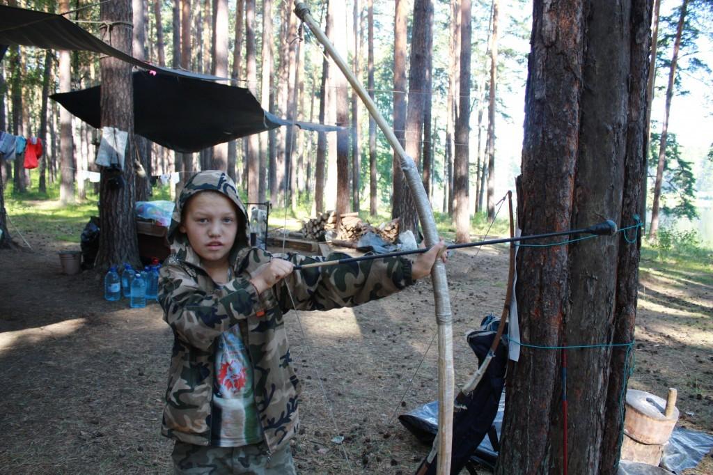 Правда, настоящих стрел у ребят нет – вместо острых наконечников на конце тонких палочек мягкая подушка, чтобы при стрельбе никого не поранило. Вокруг нас появляются и другие мальчишки лагеря и вместе начинают учить стрелять из лука. Со второй попытки моя стрела улетает на добрый десяток метров! Однако, для точной стрельбы нужны постоянные тренировки. Этим и занимаются изредка в лагере мальчишки, пытаясь научиться стрелять также точно и далеко, как это делали древние стрелки.