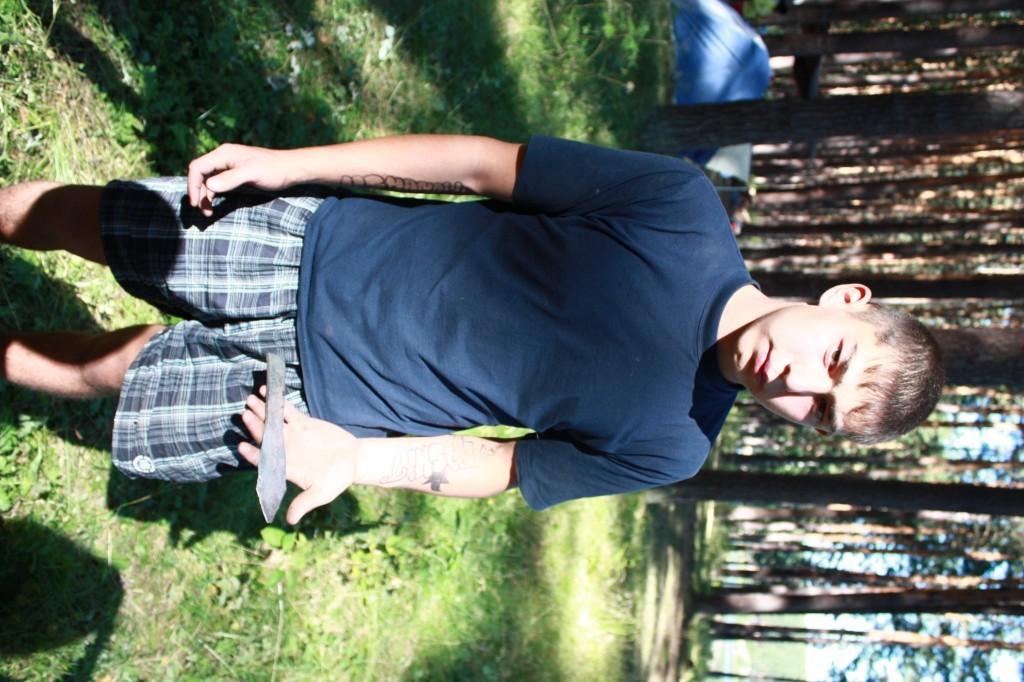 – Кстати, там у нас находится кузня, – говорит Ирина Михайловна и тут же ведет меня к воде. – Наши мальчики учатся ковать металл по тем технологиям, которые раньше существовали на Урале. Этому их научил Александр Петрович Быков, кузнец в седьмом поколении из Екатеринбурга. На берегу он выстроил для ребят печь для плавки металла. Рядом – наковальня и меха.