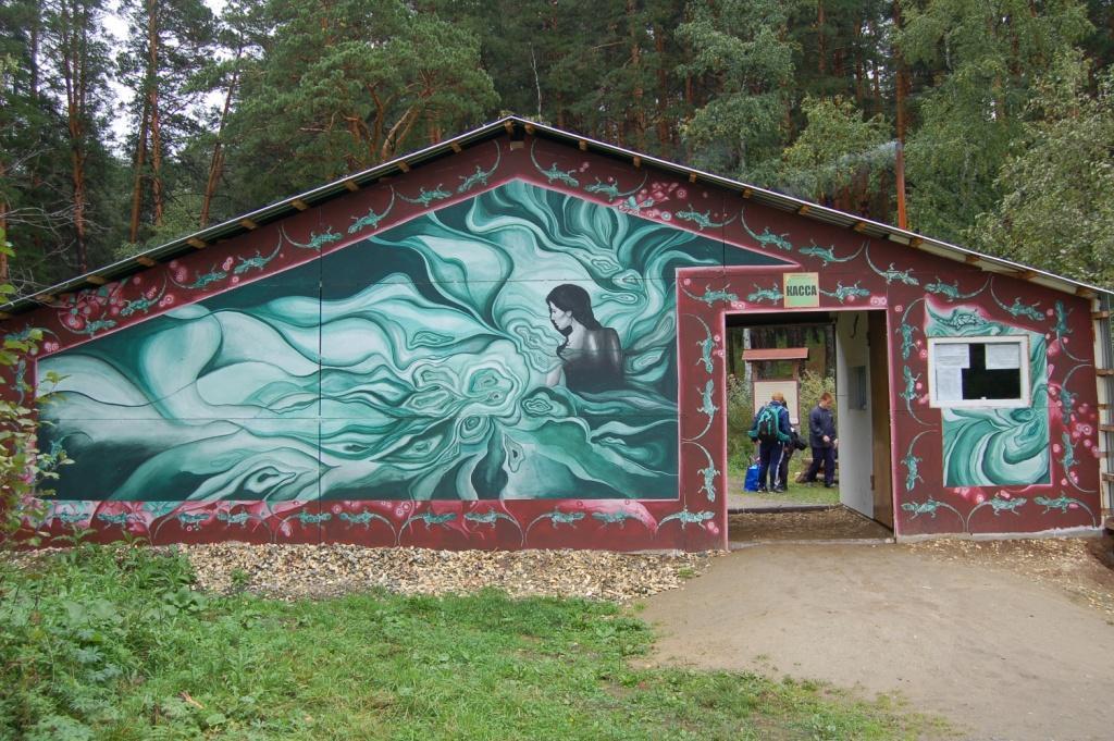 – Входная группа была безликой и больше походила на гараж, – говорит методист по экологическому просвещению природного парка «Бажовские места» Сергей Санатин. – Мы думали оформить постройку под домик Даренки из сказа «Серебряное копытце», а на крыше бы стояла фигура сказочного козлика. Но посчитали, нам показалось дорого. Решили обойтись рисунками. А стена автографов привлечет любителей делать памятные надписи – чтобы не портили наши беседки и не писали на скалах.