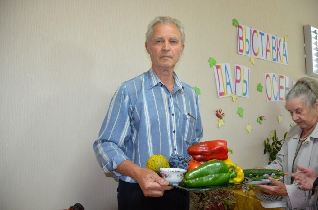 Самые крупные дары оказались у Федора Яковлевича Шарикова. Это перцы Дэнис, лук Эксбишен и томаты: желтый Царевич, красный Король гигантов, зеленый Малахитовая шкатулка. Последний нравится Федору Яковлевичу больше всего. Он – очень вкусный и сочный, – говорит садовод. А еще Федор Яковлевич принес виноградную кисть. Какой сорт, – признается, – не знаю. Это они пытались определить вместе с Надеждой Ивановной Возняк, которая пришла на встречу с двумя сумками: с виноградом, яблоками, грушами и свежими заготовками вместе с только что сваренной горячей картошкой – надо сразу то, что сделано по рецептам, попробовать. Забегая вперед, скажу: оценили все по достоинству.