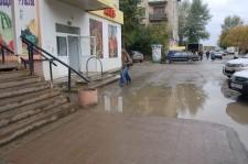 Ну тут то ещё ничего! К магазинам можно подобраться. А вот выход со двора 23 школы на ул. Р.Люксембург – это что-то! Лужа какраз прямо в воротах. И этому аттракциону уже лет сорок. 🙁