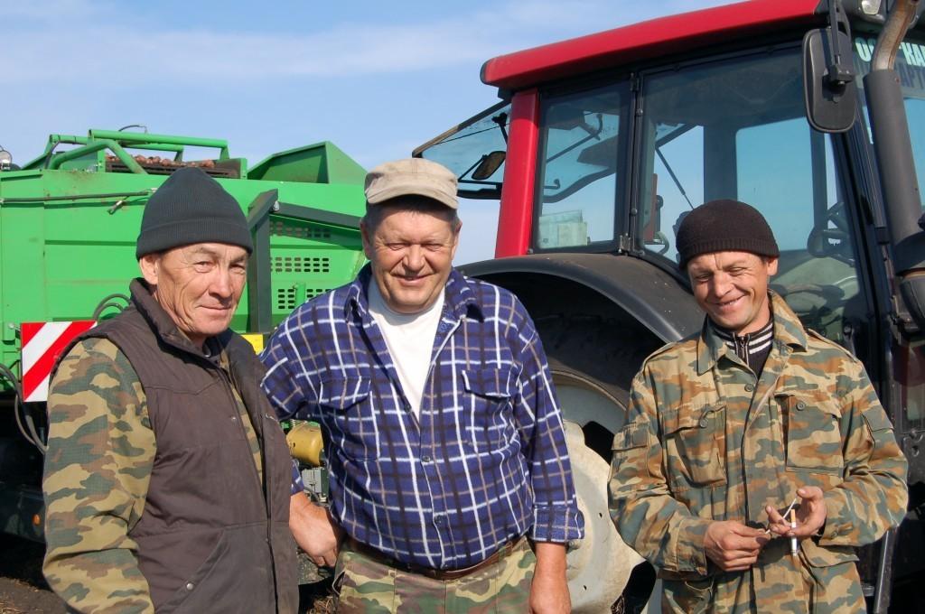 За штурвалом финского трактора – опытнейший специалист Александр Дмитриевич Сухоткин. На голландском картофелеуборочном комбайне – Алик Александров и Мирослав Тимергалиев. Их вы видите на снимке. Импортная техника, конечно, дорогая (этот комбайн работает уже пятый сезон, и только в следующем году предприятие закончит выплачивать за него кредит), но себя оправдывает – после прохода комбайна клубней на поле практически не остается.