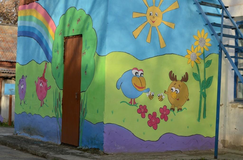 Не перестаю удивляться всякий раз, когда прохожу мимо детского садика N1 «Василек» (он находится в районе двухэтажек). На детских площадках появляются все новые сказочные персонажи, а несколько недель назад одна из стен здания садика превратилась в красочную лужайку, на которой живут любимые герои малышей – Смешарики.