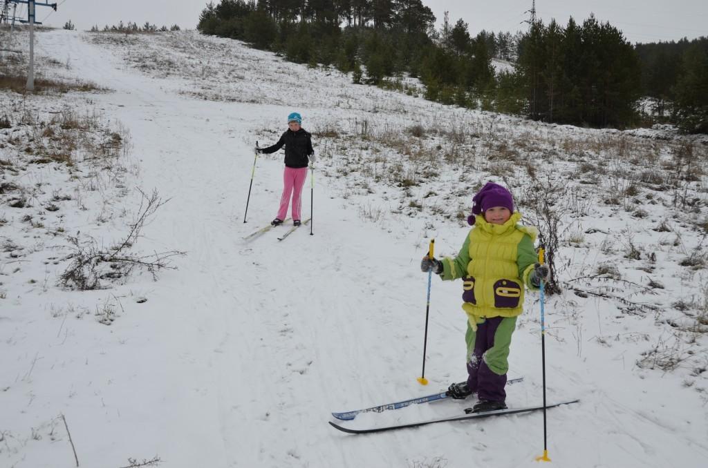 Эти снимки сделаны 7 ноября. Снег только-только лег на землю, а сестры Таня и Настя Девятых уже открыли лыжный сезон. «Мы – первые!» – с гордостью говорит их дедушка Н. Девятых.