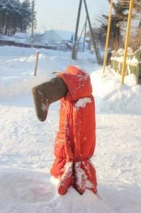 водоразборную колонку жители не только в одеяло укутали, но и валенок надели.