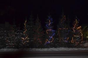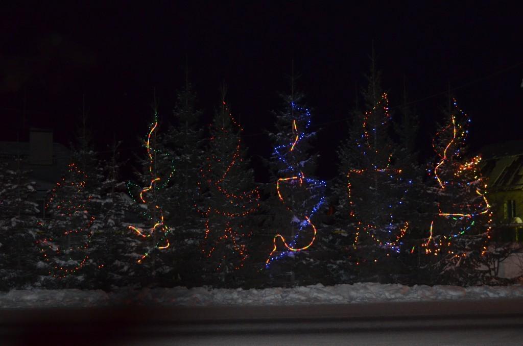 Наверняка, у всех, кто заезжает в Кашино со стороны Екатеринбурга или выезжает туда в темное время суток, на лицах появляются улыбки и поднимается настроение. У последнего дома высажены елочки. И вот уже во второе предновогодье хозяева украшают елочки гирляндами. Елочек не 1-2, а 8-10. Поневоле улыбаться начинаешь.