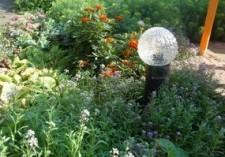 – Работы с ними, конечно, много, – говорит Анжелика Степановна, – особенно с высокорослыми. Их нужно обязательно подвязывать, устанавливать опору, иначе ветер не только отдельные ветки сломать может, а также весь куст выдернуть. Приходится потрудиться и осенью. В конце августа растение необходимо окучить на высоту 25 см для предохранения корневой шейки от заморозков. Удаление листьев с нижней части куста на высоте 40 см обеспечивает лучший доступ к почве тепла, воздуха, удобрений. Этот прием способствует вызреванию клубней и корневой шейки, лучшему их хранению зимой. А перед хранением клубни георгин нужно промыть проточной водой и хорошо просушить. Если есть возможность, хранить их в песке. Но у нас их очень много, поэтому просто раскладываем на полках подпольев. Но эта работа оправдывает себя. Когда георгины цветут, глаз не оторвешь. Ухаживая за растениями, здесь не забывают и о дизайне сада. Уже выложена из камня основная дорожка, ведущая из двора в сад, и вдоль нее в клумбах и под кустами установлена подсветка. Дорожка пока доходит до главной клумбы, сделанной в форме капли, но будет продолжаться и дальше.