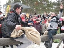 Старт масленичным гуляниям дал глава Большеистокской сельской администрации Александр Зырянов, тепло поприветствовавший собравшихся. Он же официально поздравил «золотоженов» – супругов, проживших в браке 50 и более лет. В поселке стало уже своего рода традицией вручать во время праздничных мероприятий знаки отличия «Совет да любовь», и в прошлую субботу их получили Василий Андреевич и Надежда Григорьевна Дементьевы, а также Владимир Васильевич и Нина Ивановна Ищенко. После «официальной» части настала пора веселых конкурсов, танцев и песен. Всего и не перечислишь: тут было и перетягивание каната, и бой мешками, и прогулки на ходулях. Но самой зрелищной забавой стал «скользкий столб», забраться на который удалось лишь немногим. Большинство покоряло вершину с голым торсом, некоторые даже натирались снегом для лучшего «сцепления». Лучшие верхолазы в итоге получили ценные призы для настоящих мужчин: дрели и наборы инструментов.