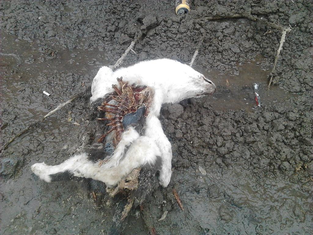 И я, признаюсь, так же равнодушно проходил сначала мимо собаки, которую сбила машина на улице Большевиков, у дома 54а. Я думал, что ее вскоре уберут, и шел дальше по своим делам. Наверное, так думали и другие. И вот тело животного до сих пор лежит на обочине. Уже растаял снег, и туша оказалась у всех на виду. Я ее сфотографировал, она уже разлагается.