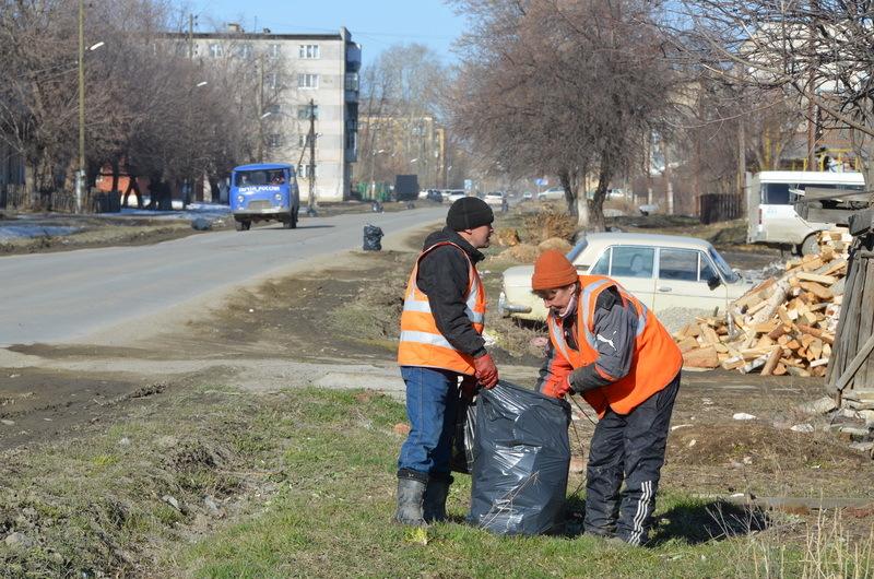 Еще до последнего апрельского снегопада люди в «оранжовках» – рабочие Сысертского МУП «Благоустройство» – собирали по обочинам дорог по улицам в черные мешки все, что вытаивает после зимы.
