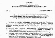 В конце прошлого года Президиум генерального совета Всероссийской политической партии «Единая Россия» утвер­дил протокол взаимодействия и информационного обмена с Общероссийским объединением профсоюзов СОЦПРОФ. Ре­шение подписал секретарь президиума В. В. Володин.