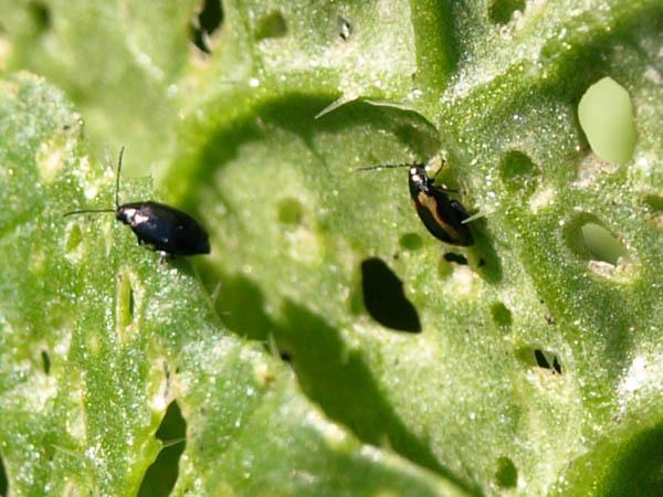 Крестоцветные блошки повреждают капусту, брюкву, репу, редис, горчицу и другие овощные и масличные крестоцветные. Блошки зимуют в почве, в щелях парниковых рам или под различными растительными остатками. Они появляются ранней весной сначала на сорняках, а потом переселяются на культурные крестоцветные. Повреждают жуки, соскабливающие верхний слой ткани листа в виде мелких язвочек. При массовом повреждении растения значительно отстают в росте, объеденные листья засыхают, что часто вызывает гибель растения, особенно в период всходов. Оптимальная температура для питания имаго – 18-25 0С. При понижении температуры жуки обычно покидают растения и уходят в почву.