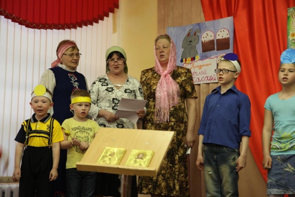 Этот весенний радостный праздник собрал всех желающих, чтобы поделиться своей радостью с другими – настоятеля храма о. Константина, учащихся школы, их родителей, педагогов, гостей. Вниманию зрителей были представлены видеоматериалы о Пасхе, детский спектакль «Весенние краски», кукольный спектакль в исполнении детей старших классов и педагогов школы «Пасхальный колобок». Учащиеся воскресной школы В. Петухов и М. Горохов показали приемы борьбы под пение родителей и педагогов песни «Богатырская наша сила». Завершилась программа чаепитием с куличами, освященными в пасхальную ночь в храме св. апостолов Петра и Павла, а также вручением детям подарков, приготовленных силами о. Константина и родителей.