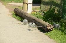 Если пройти чуть дальше к церкви, то возле домов обнаружим сваленные столбы – это энергетики начали замену столбов линии электропередач. Новые уже установлены, территория вокруг прибрана, а старые – уберут ближайшее время.