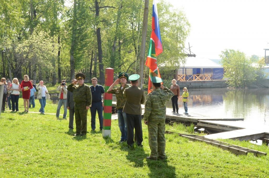Со всех сторон к лодочной станции в солнечный полдень собирались защитники наших границ. Сегодня, 28 мая, они отмечают День пограничника. Возле флагштока появился пограничный столб, раскрашенный в зелено-красные полосы – главный символ всех, кто охранял нашу родину.