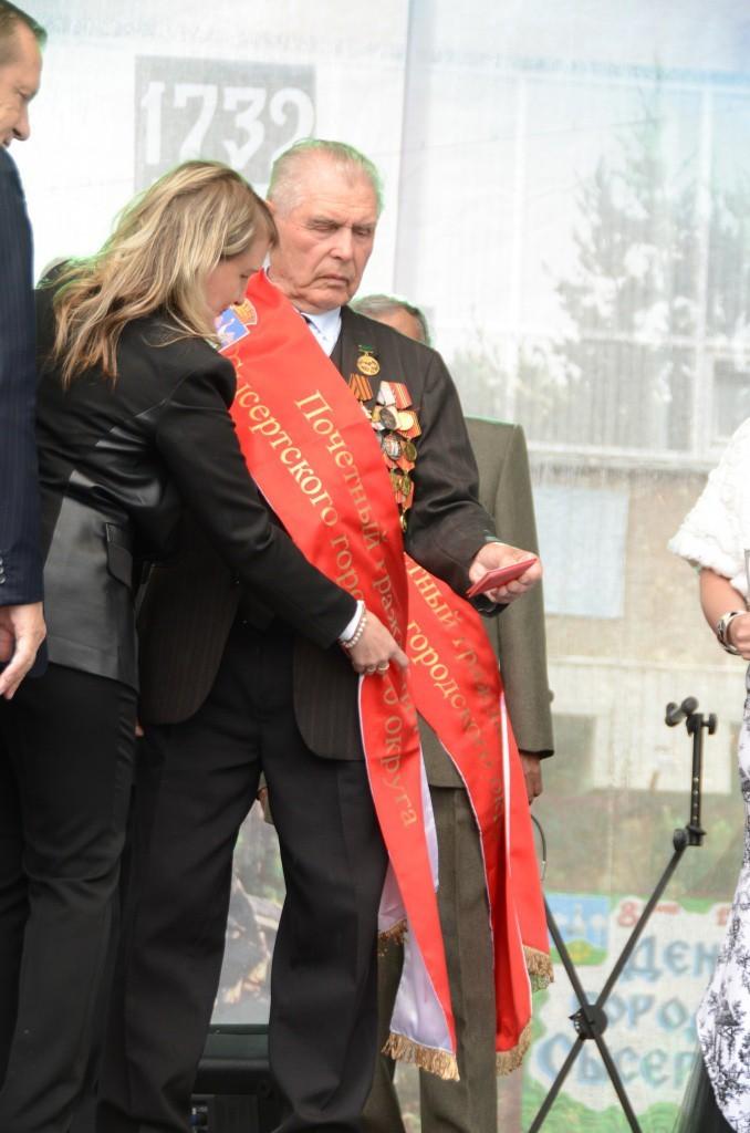 В палатках с едой продавались не только шашлыки с соком. но еще и дождевики. Но это не помешало провести традиционную программу “Земляки”, где лентой “Почетный житель Сысертского городского округа” наградили Петра Филипповича Ушакова (таких жителей у нас всего четверо), поздравили семейные пары и других активных жителей нашего города. Обычно проводят парад колясок, но в этом году решили устроить парад детских костюмов – он получился очень красочным.