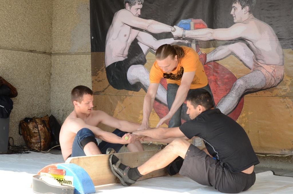 Уже традиционными в день города стали соревнования по мас-рестлингу. Они проходили на крыльце «Ростелекома», под крышей, так что спортсменам был не страшен никакой дождь.