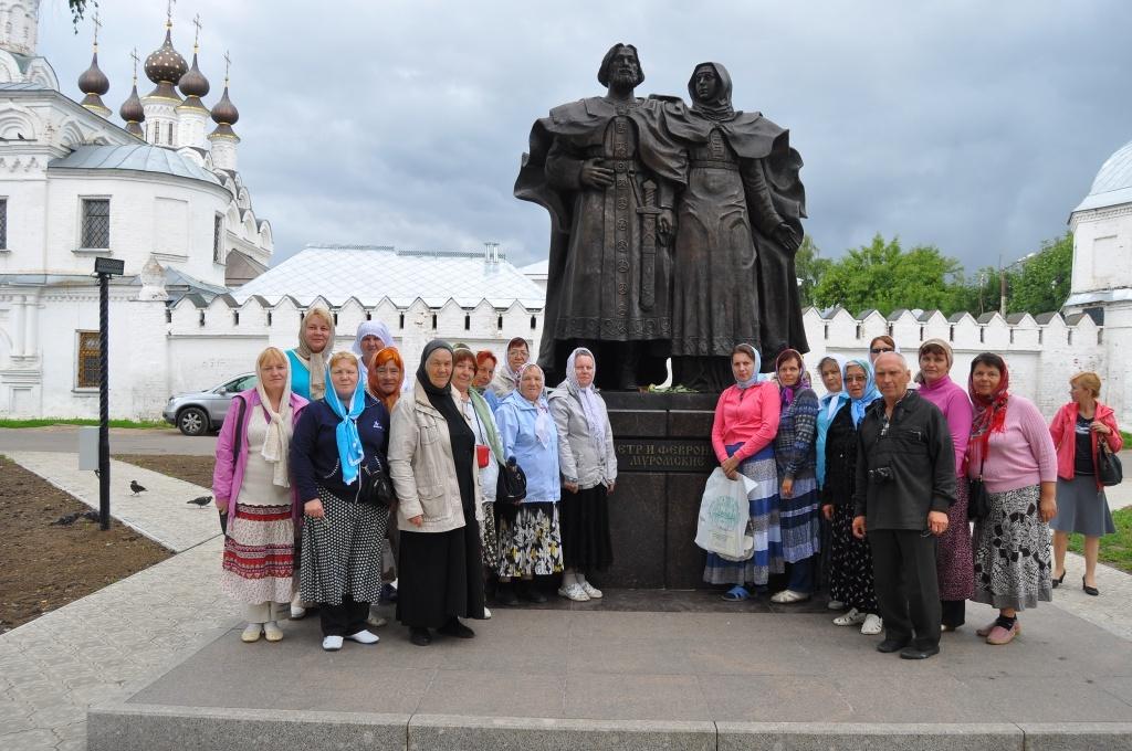 В Муроме осмотр достопримечательностей начали с мужского Спасского монастыря, на территории которого находятся Спасо-Преображенский собор, церкви Покрова Пресвятой Богородицы и прп. Сергия Радонежского и несколько часовен. Среди святынь обители особо почитаемы иконы Богоматери Скоропослушницы и прп. Серафима Саровского с частицей его мощей, а также рака прп. Илии Муромца с частицей его мощей.