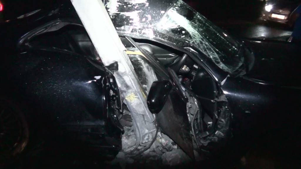 Из-за ДТП жители близлежащих домов на некоторое время лишились света: когда искореженный автомобиль поместили на эвакуатор, опора ЛЭП рухнула на землю. Электрикам тоже пришлось потрудиться этой ночью.