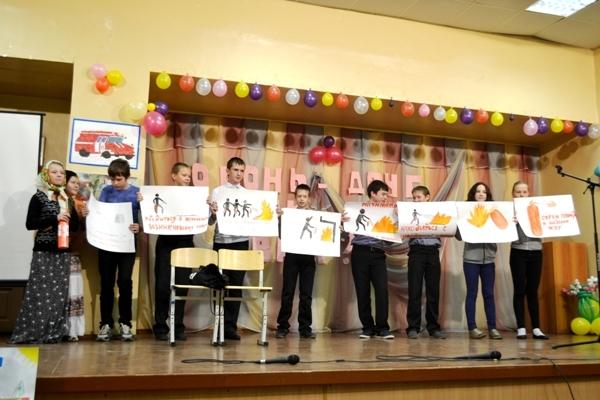 19 сентября на общешкольные мероприятия были приглашены инструктор Сысертского отделения ВДПО Т. Л. Степура и инженер 24 отряда федеральной противопожарной службы Е. Ю. Круглякова. Это был настоящий конкурс талантов. Языком искусства дети продемонстрировали, как можно легче усвоить правила обращения с огнем. В командной борьбе прошло интересное соревнование по этапам, где ребятам пришлось хорошенько поработать: решать ситуационные задачи, отгадывать пожарные знаки, вспоминать пословицы на тему пожаров, отвечать на вопросы викторины.