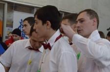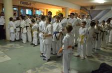 Открытие назначили на 11.00. Но каратисты прибыли на пару часов раньше – регистрация, взвешивание и финальная разминка перед боями нужны были каждому. Два тотами разместили под куполом, здесь же собрались зрители и группы поддержки участников. Но не было видно ни одного спортсмена в белом кимоно? Где же они? Все ребята за несколько минут до открытия отправились на построение в холл ГЦД. Там и протиснуться негде – так много собралось босоногих ребят в боевых кимоно. Да, все стояли босиком – ведь борются каратисты на тотами босиком.
