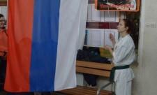 Алексей Дубинов вместе с Владимиром Шибаевым произносят приветственные речи и приглашают выйти к зрителям сначала судейскую команду, а затем и спортсменов. Четко друг за другом под аплодисменты выходит около 300 участников турнира. Собрались представители нашего района, Екатеринбурга, Лесного, Сургута, Каменск-Уральского, Челябинска, Режа, Серова, Арамили, Верхотурья и В. Пышмы. Под государственный гимн флаг поднимает одна из призеров прошлых состязаний – Елена Синявская. Все, состязания можно считать открытыми. Ребята расходятся, каждый перед выходом с тотами совершает традиционный жест поклона.
