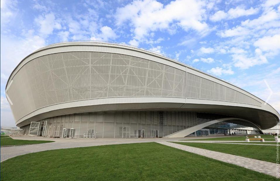 Примет соревнования по фигурному катанию и шорт-треку, вместимость 12 тыс. человек. По замыслу архитекторов, линии изгибов фасада Ледового дворца повторяют траекторию полета фигуриста в прыжке “тройной тулуп”. Его тоже опробовали на практике – во дворце прошел финал Гран-при по фигурному катанию. В окончании игр дворец спорта планируют переделать в велотрек.