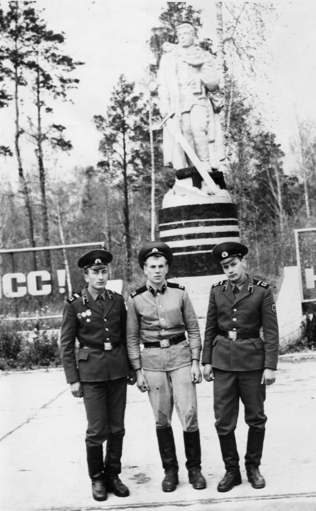 Не случайно мы с друзьями снялись на фото на фоне знаменитого памятника. Но это не Трептов-парк в Берлине – это наша воинская часть ракетных войск стратегического назначения в Новосибирской области.