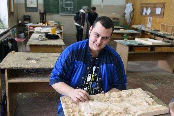 – Нас учат работать рубанком, стамеской и другими инструментами, обрабатывать древесину, чтобы заготовка была ровная, без заусенцев, – делится Дима. – Мы наносим рисунок на дощечку, а затем вырезаем объемный узор. Первая работа студента – это резная шкатулка.