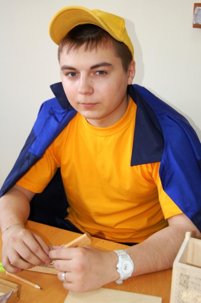Дима Кибалов приехал в Бобровский филиал из города Заречный. В детстве он выпиливал поделки из фанеры лобзиком. А после школы мама предложила ему профессию связать с чем-то близким. Узнав, что в Сысертском районе обучают столяров и резчиков по дереву, дают основы токарного ремесла, она рассказала об этом сыну.