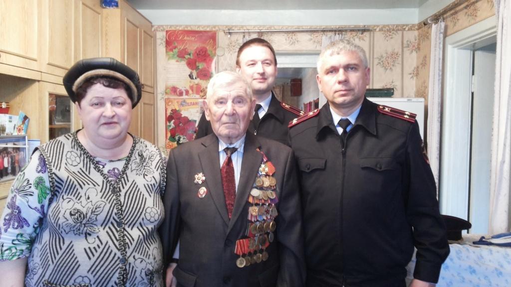 Начальник отдела полиции П. И. Заев, руководитель группы по работе с личным составом В. Н. Стяжкин и председатель местного совета ветеранов МВД С. А. Ситковская поздравили ветерана Великой Отечественной войны Вениамина Ивановича Ульянова. В свои 87 лет Вениамин Иванович бодр и весел.
